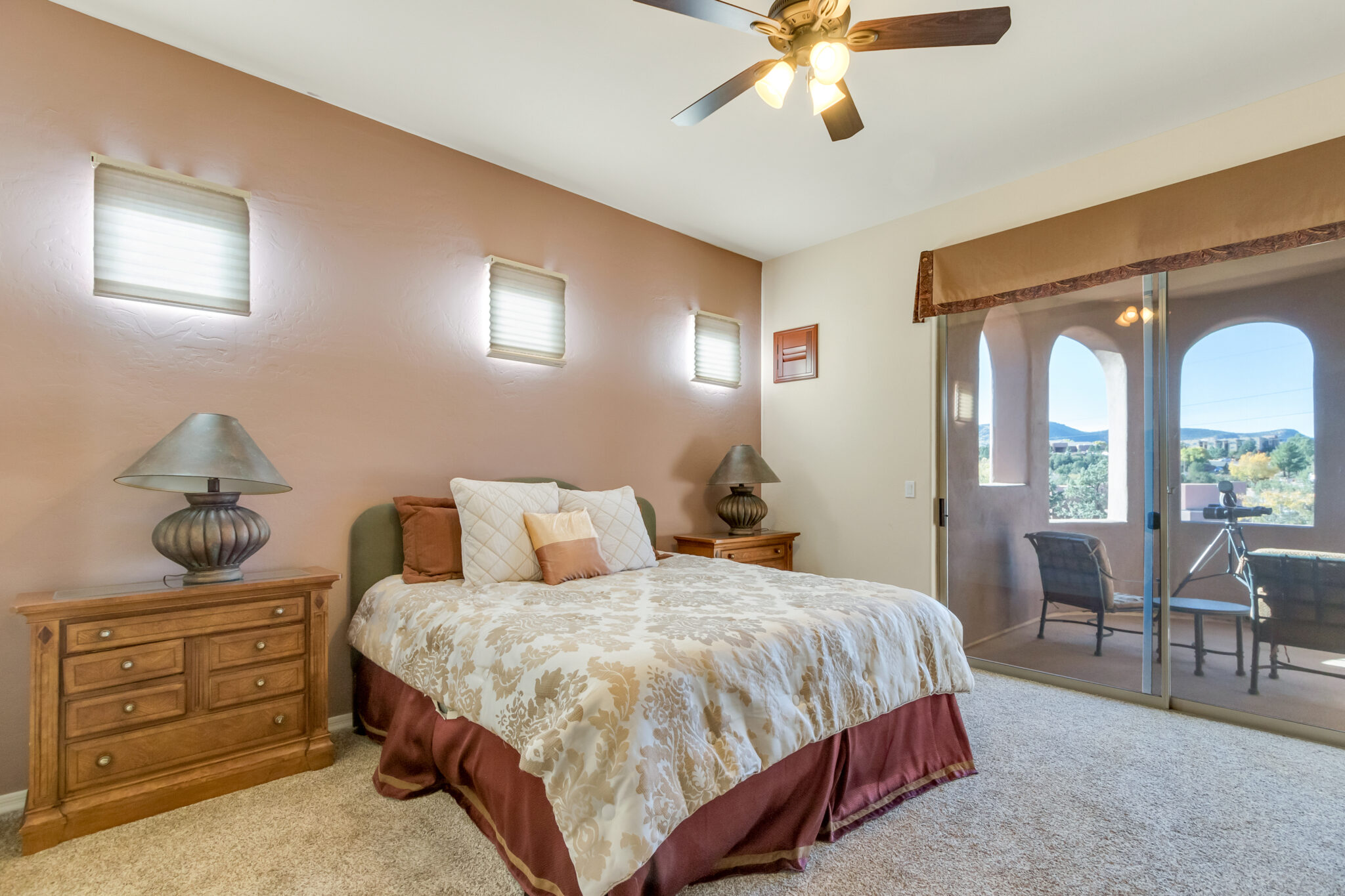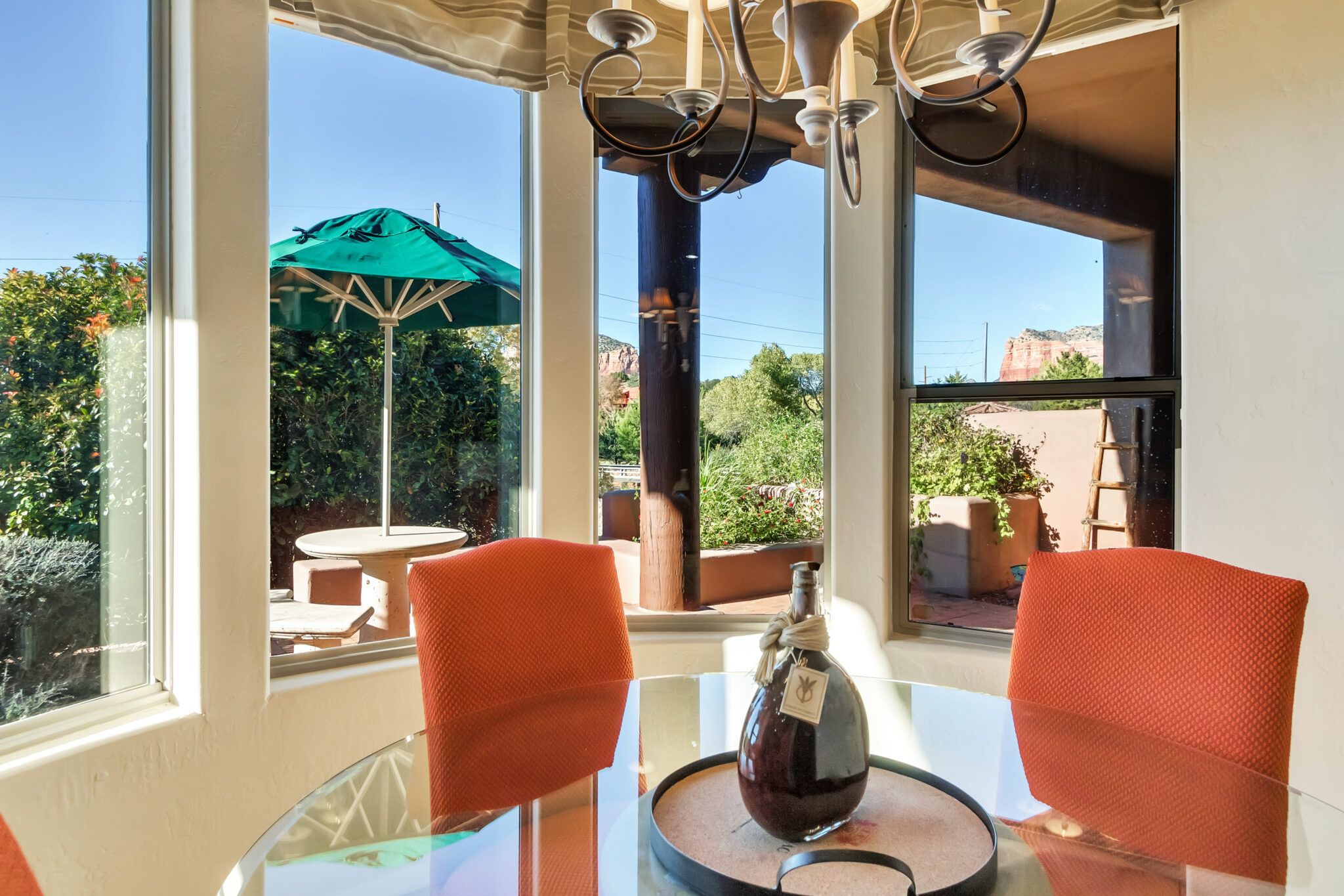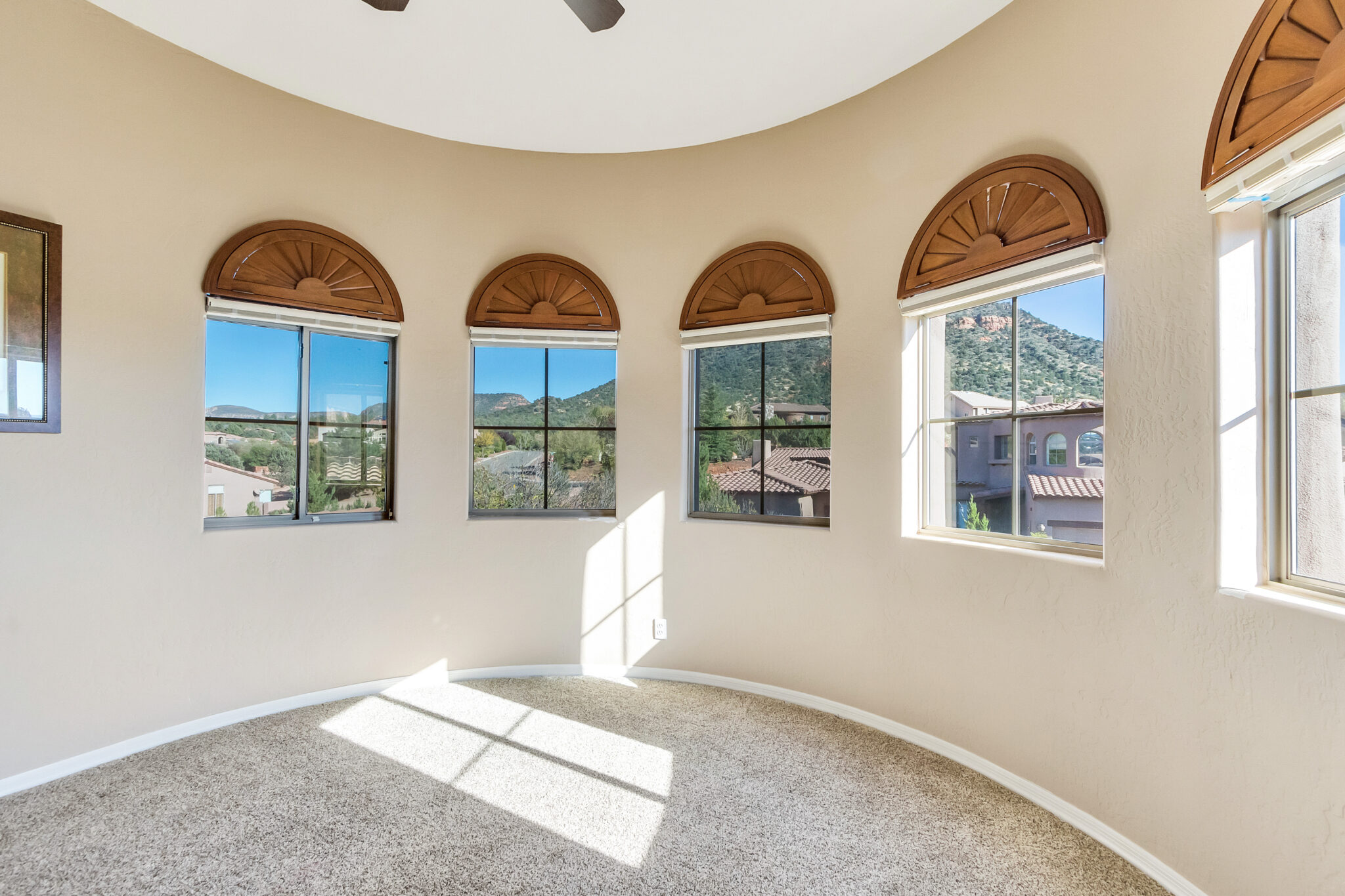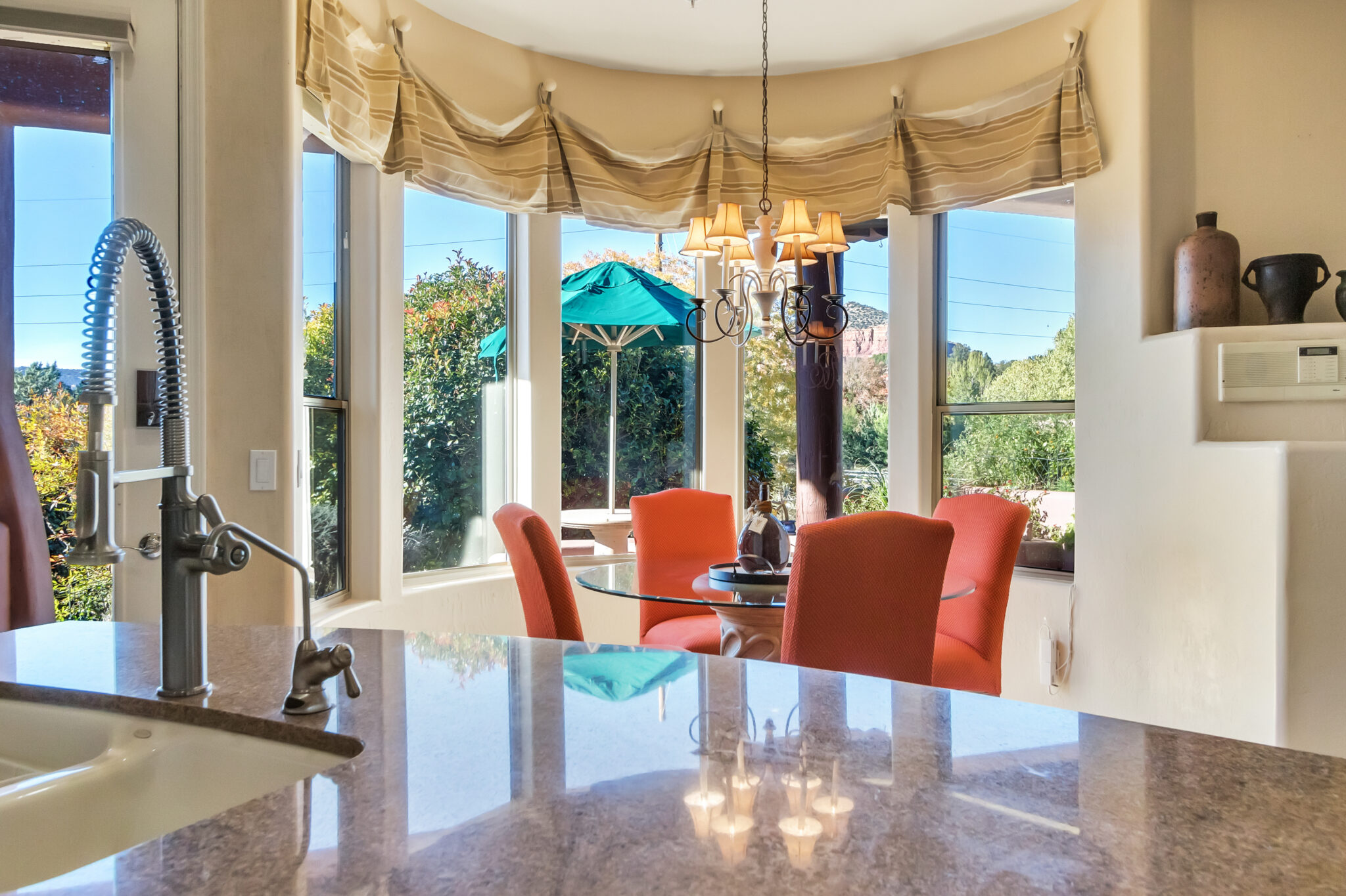 SOLD Impeccably maintained 2 Story Las Piedras townhome w/ beautiful red rock views. Home features many wonderful upgrades such as an upgraded kitchen w/ granite counters, newer stainless steel appliances, beautiful tile work & breakfast nook. Hunter Douglas triple layered remote controlled shades throughout, newer HVAC & new water softener, Stunning 84” Haiku ceiling fan in living room. Beautifully appointed covered backyard patio backs up to open space, offering tons of privacy. Bell Rock views from the master bedrooms upper balcony. Light & airy, this is the perfect place to call home!! Las Piedras features a community pool & hot tub. Garage completely enclosed in 2” rigid board insulation(R13). Close to all the amenities Sedona’s Village of Oak has to offer, shopping, restaurants, golf.