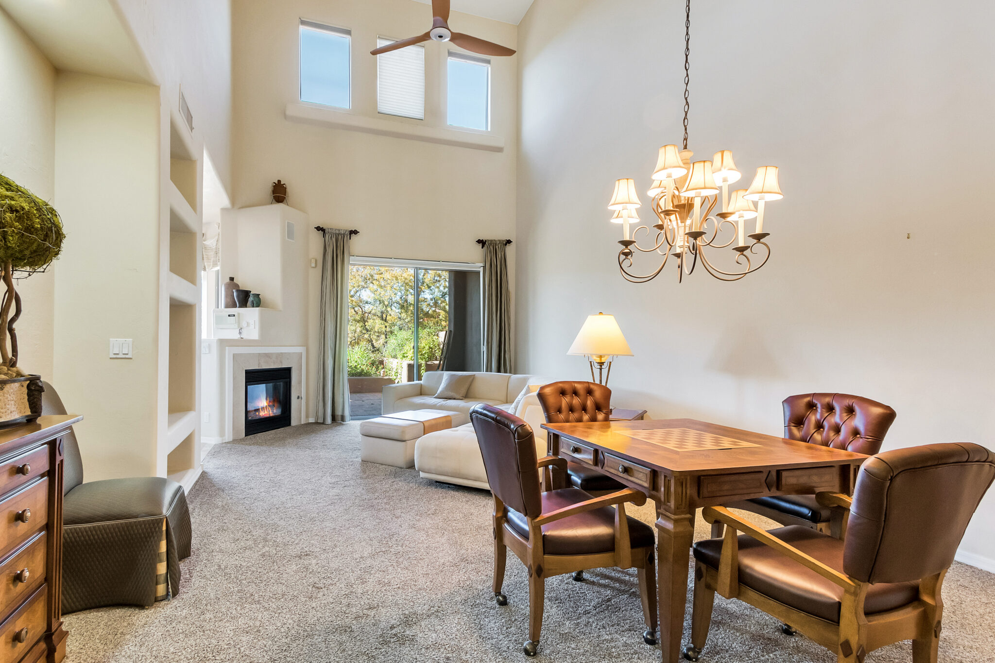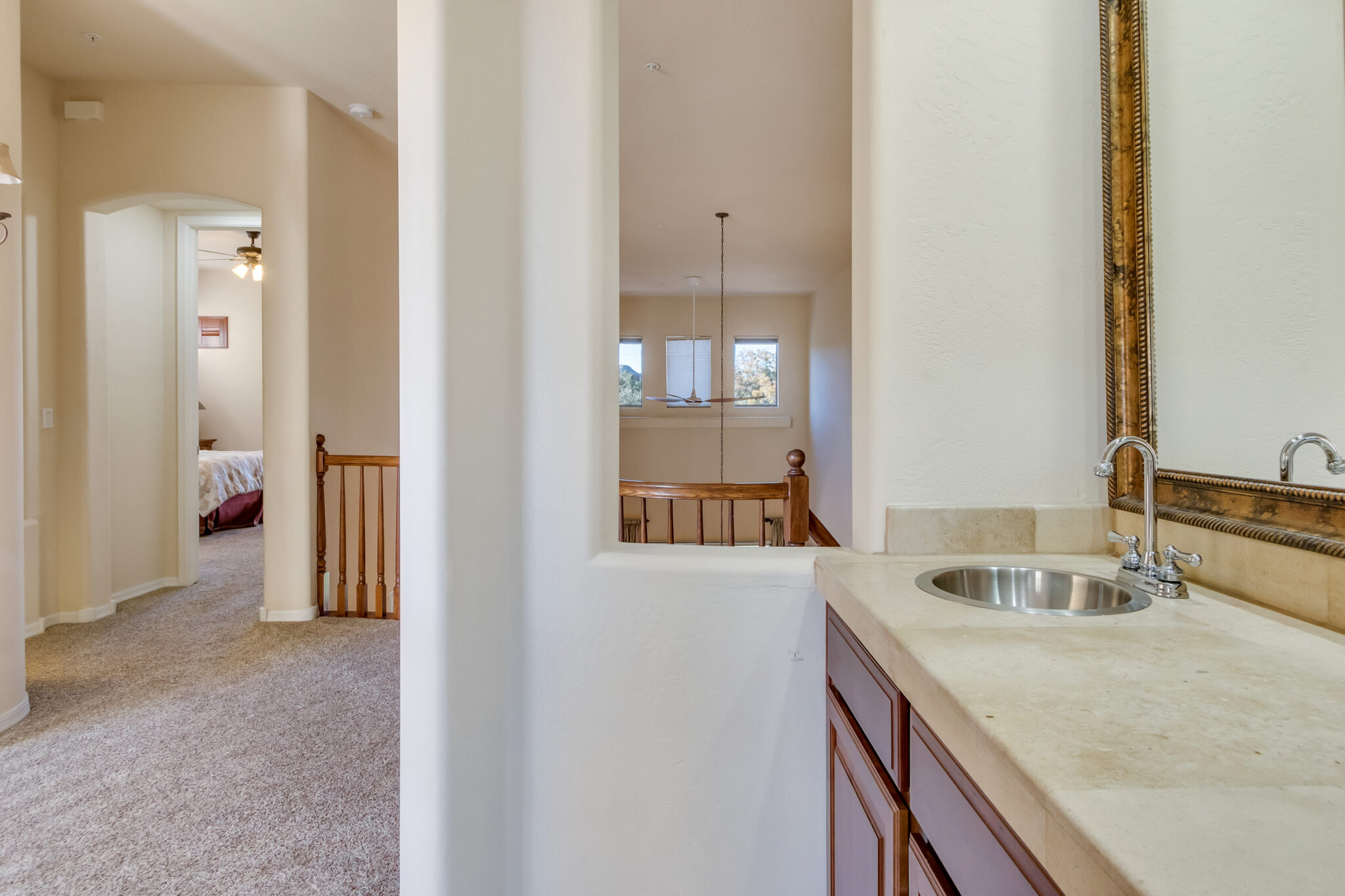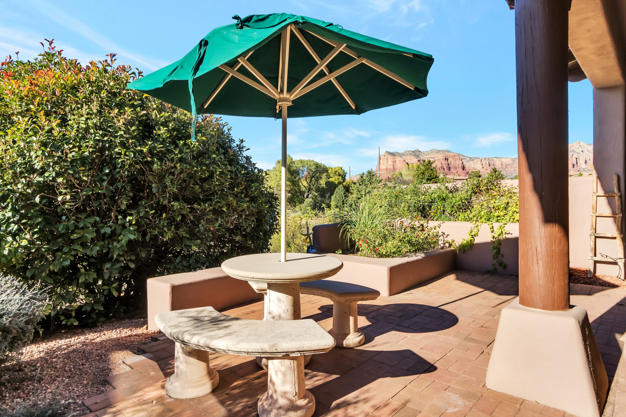 SOLD Impeccably maintained 2 Story Las Piedras townhome w/ beautiful red rock views. Home features many wonderful upgrades such as an upgraded kitchen w/ granite counters, newer stainless steel appliances, beautiful tile work & breakfast nook. Hunter Douglas triple layered remote controlled shades throughout, newer HVAC & new water softener, Stunning 84” Haiku ceiling fan in living room. Beautifully appointed covered backyard patio backs up to open space, offering tons of privacy. Bell Rock views from the master bedrooms upper balcony. Light & airy, this is the perfect place to call home!! Las Piedras features a community pool & hot tub. Garage completely enclosed in 2” rigid board insulation(R13). Close to all the amenities Sedona’s Village of Oak has to offer, shopping, restaurants, golf.