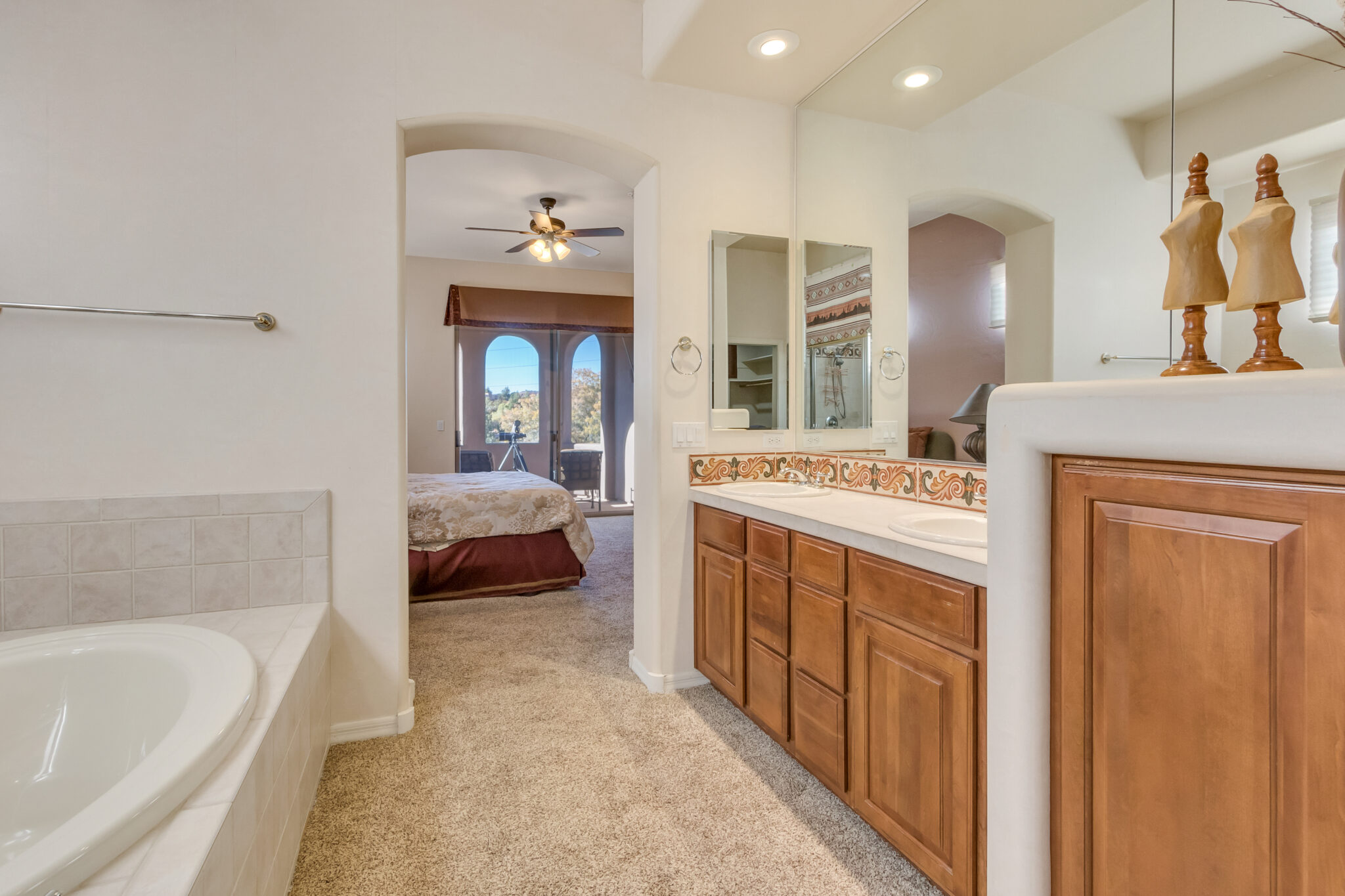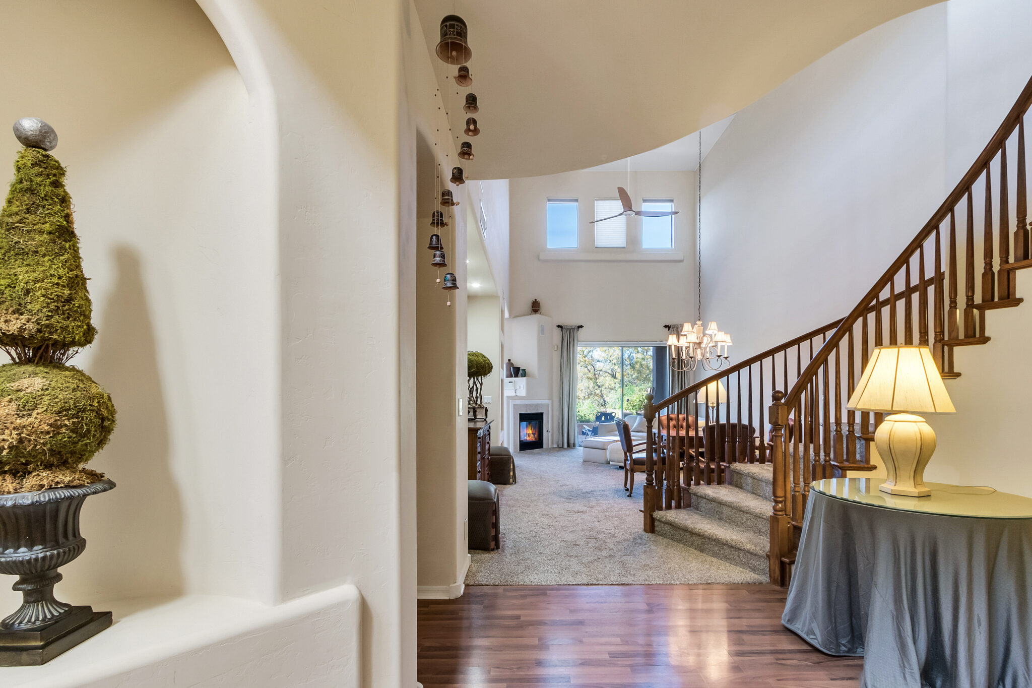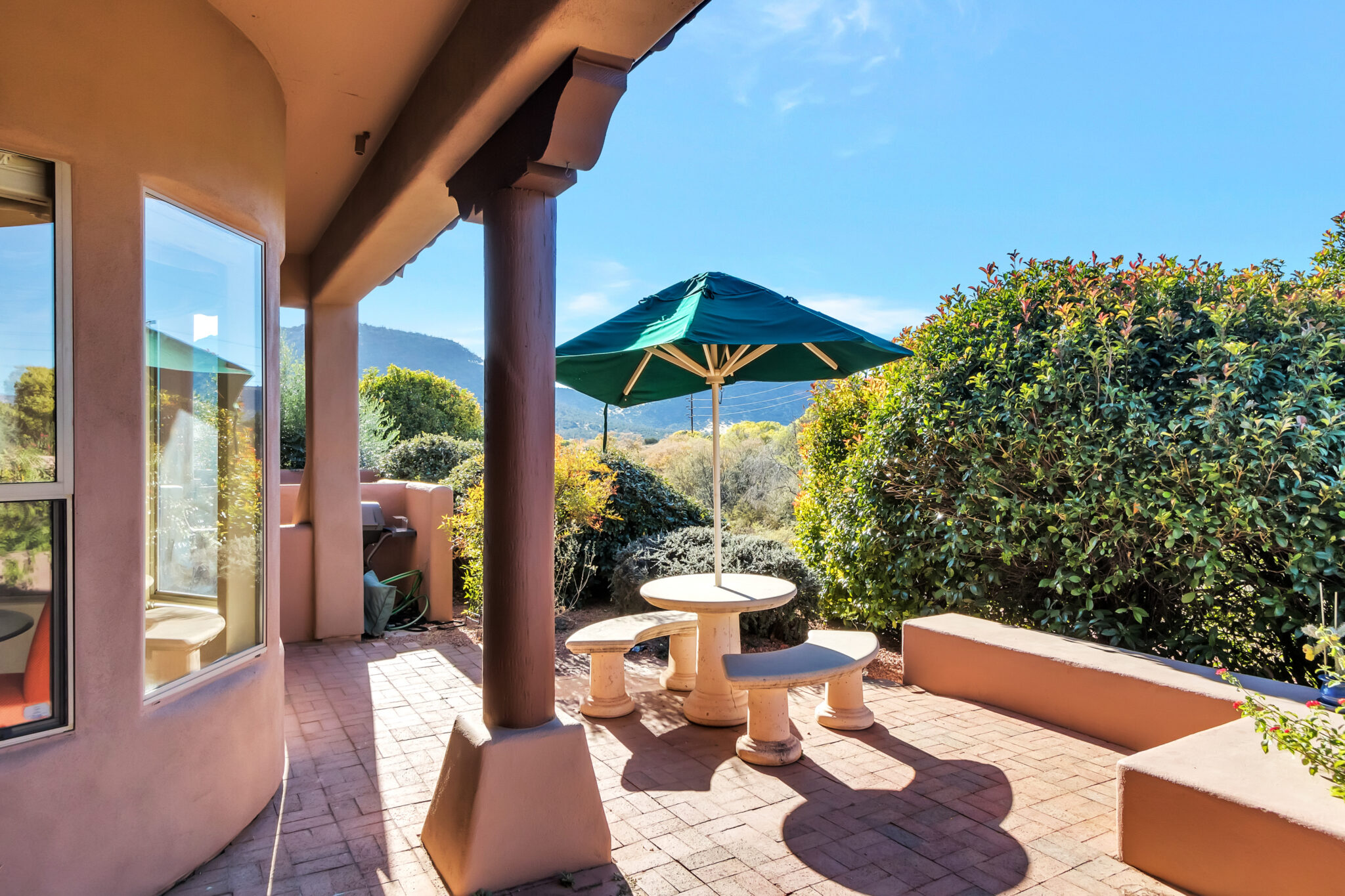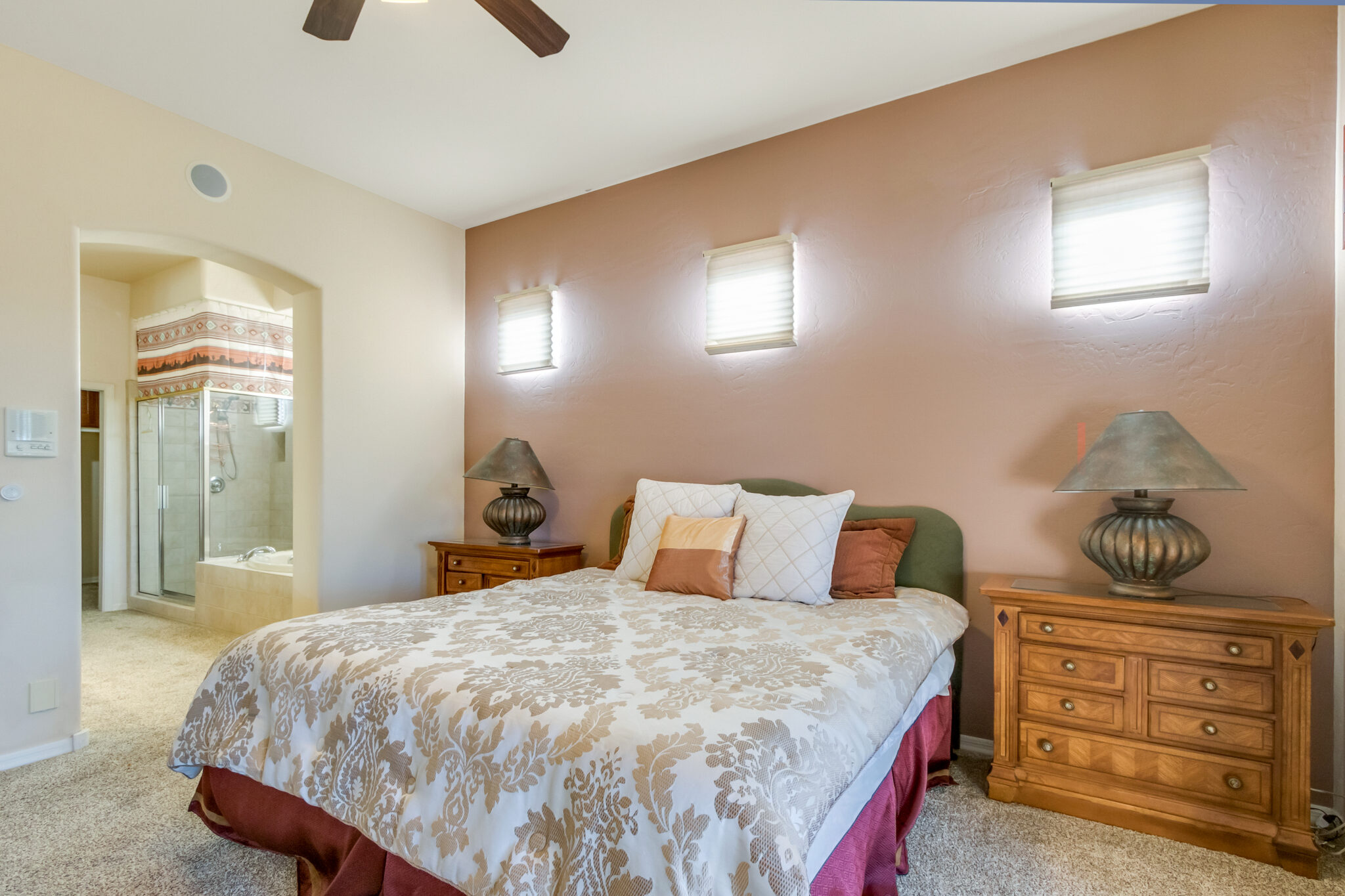 SOLD Impeccably maintained 2 Story Las Piedras townhome w/ beautiful red rock views. Home features many wonderful upgrades such as an upgraded kitchen w/ granite counters, newer stainless steel appliances, beautiful tile work & breakfast nook. Hunter Douglas triple layered remote controlled shades throughout, newer HVAC & new water softener, Stunning 84” Haiku ceiling fan in living room. Beautifully appointed covered backyard patio backs up to open space, offering tons of privacy. Bell Rock views from the master bedrooms upper balcony. Light & airy, this is the perfect place to call home!! Las Piedras features a community pool & hot tub. Garage completely enclosed in 2” rigid board insulation(R13). Close to all the amenities Sedona’s Village of Oak has to offer, shopping, restaurants, golf.