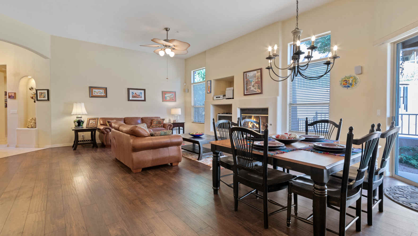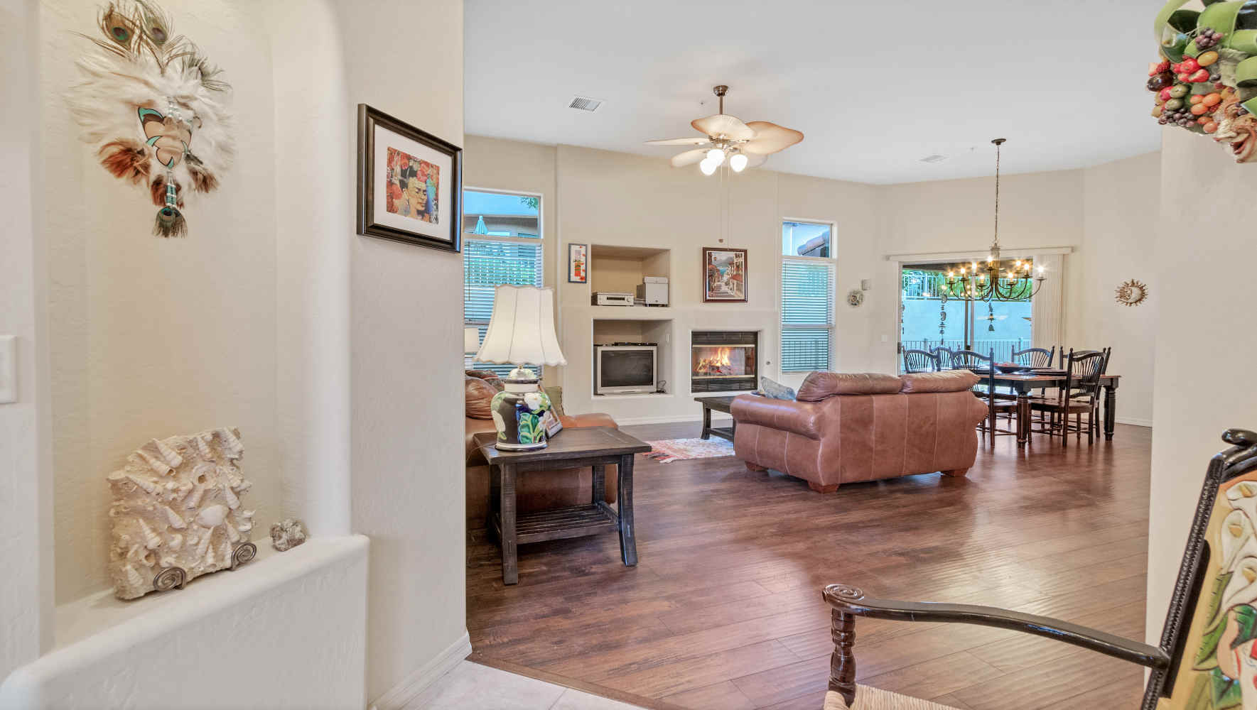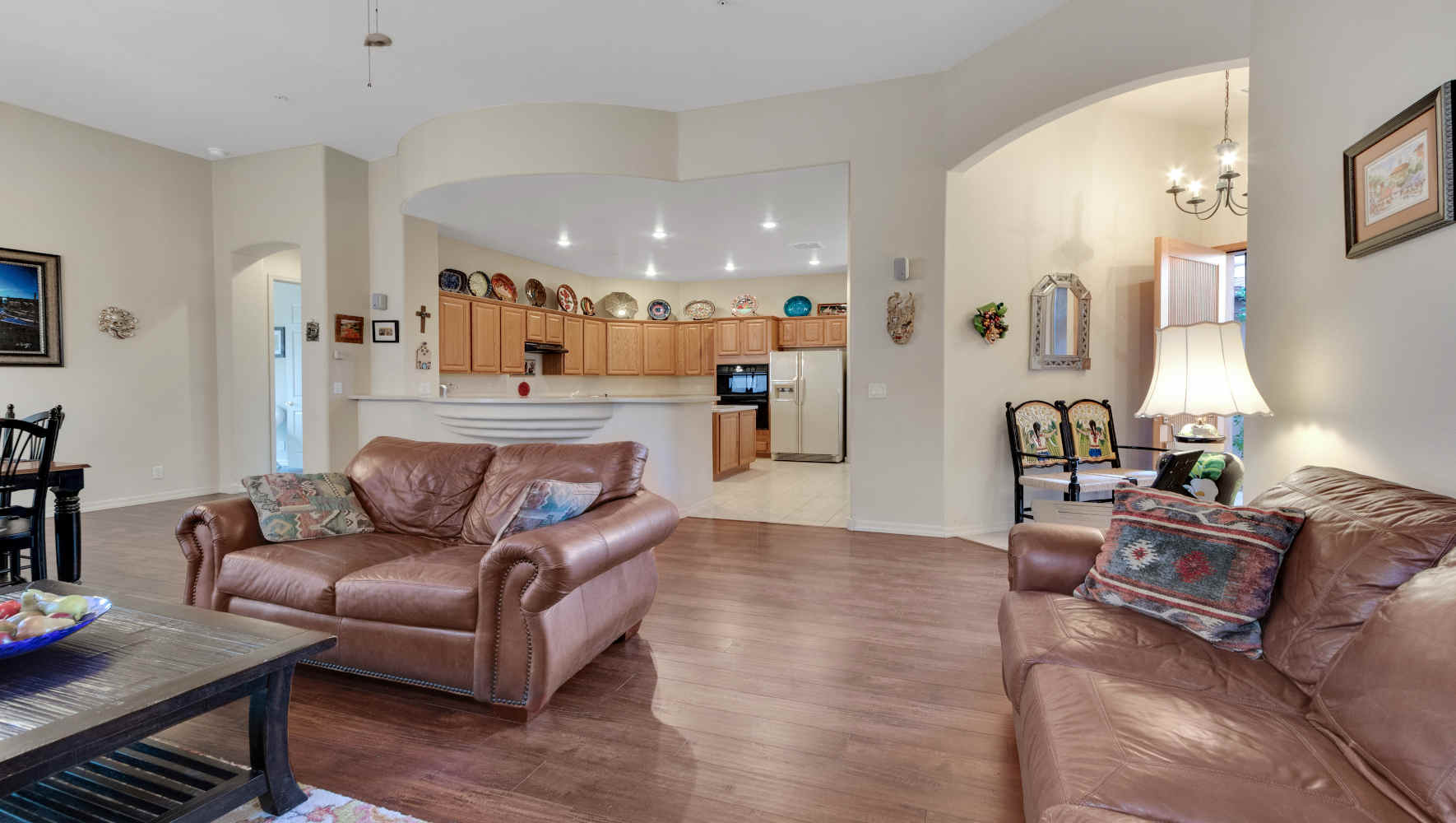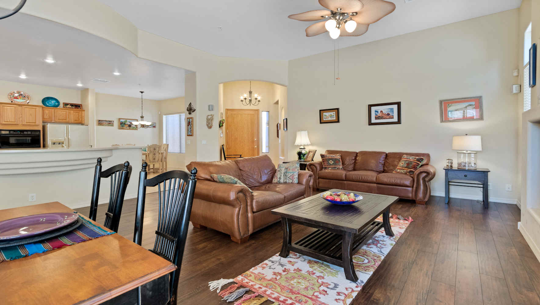 Meticulously maintained single level town home in Las Piedras. Owner has lovingly cared for home. Beautiful wood & tile floors, tall ceilings, light, open & airy make this the perfect place to call home!! Exceptional property for those looking for minimum maintenance as the HOA takes care of exterior stucco, roof & pool. Las Piedras is close to shopping, golf, hiking & dining.