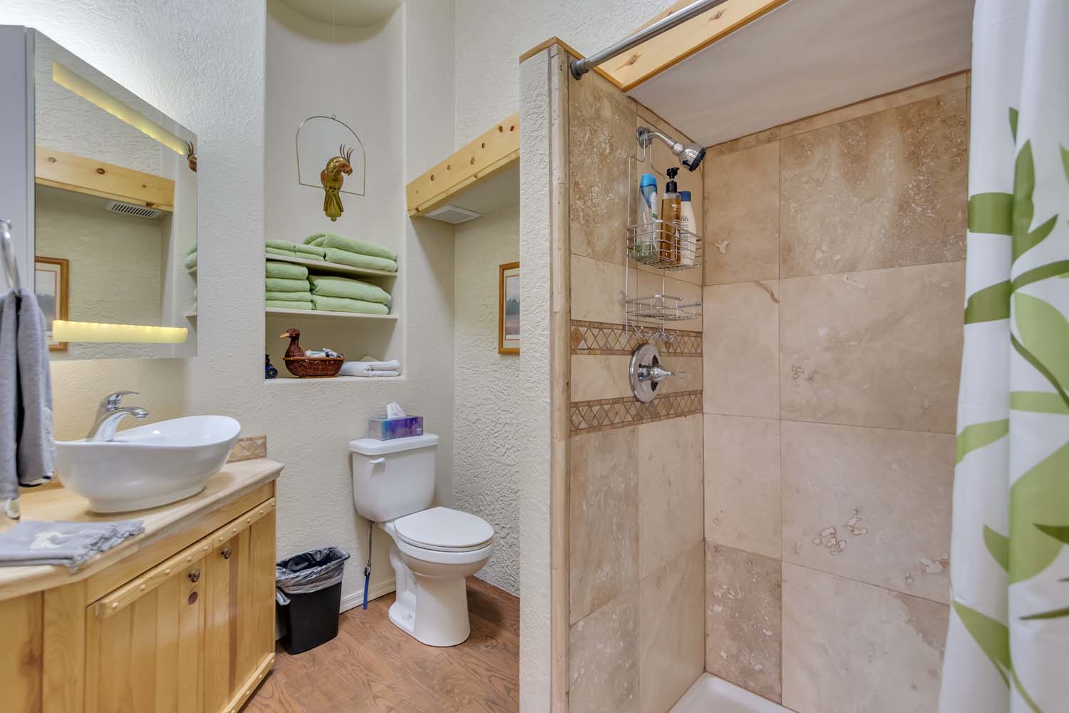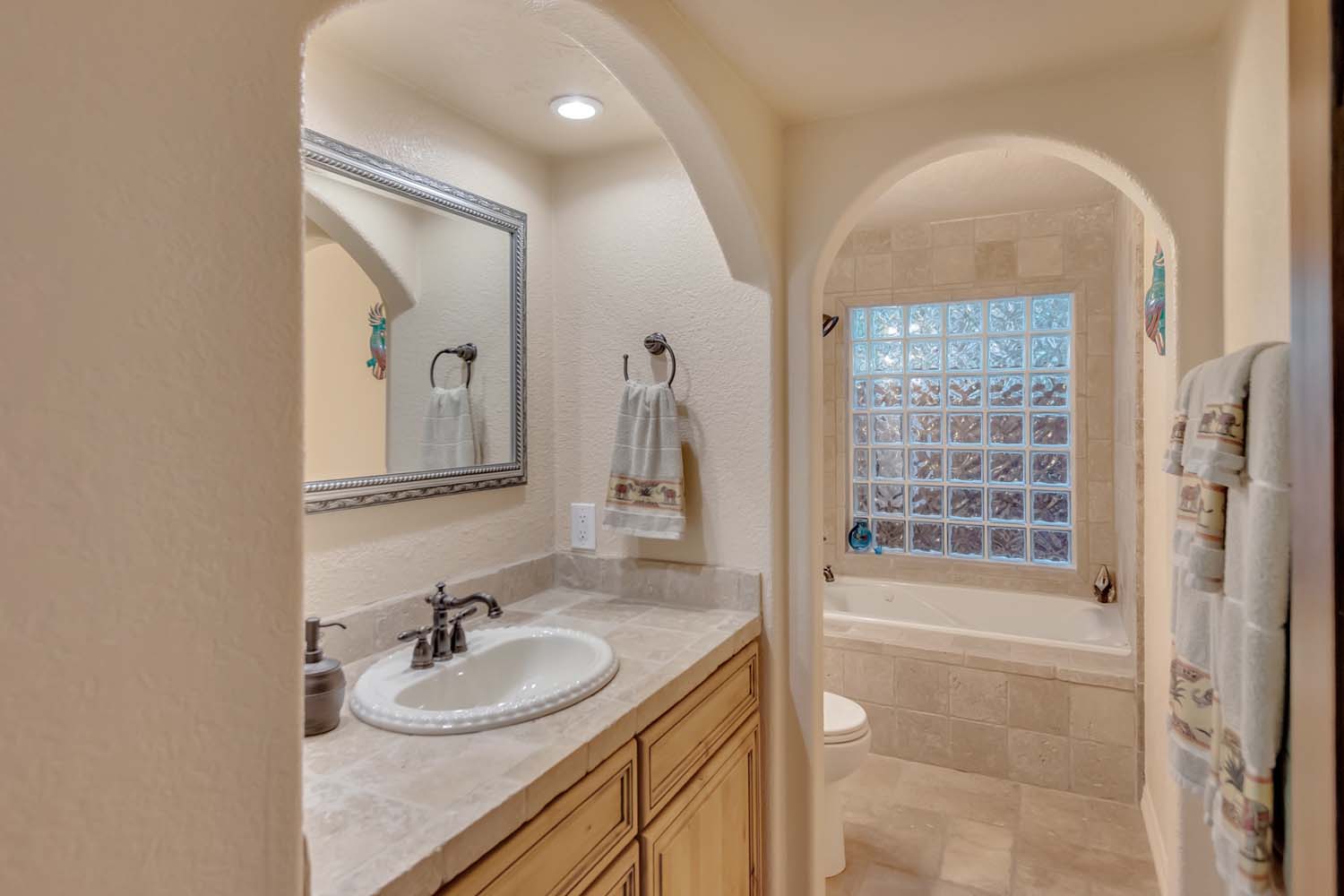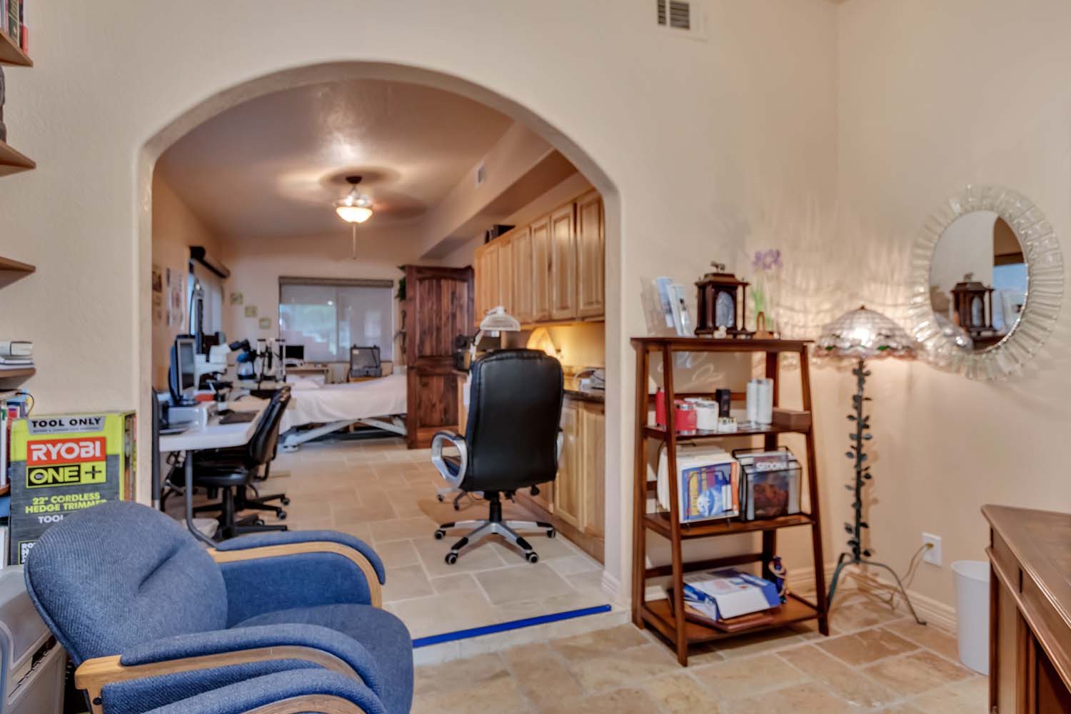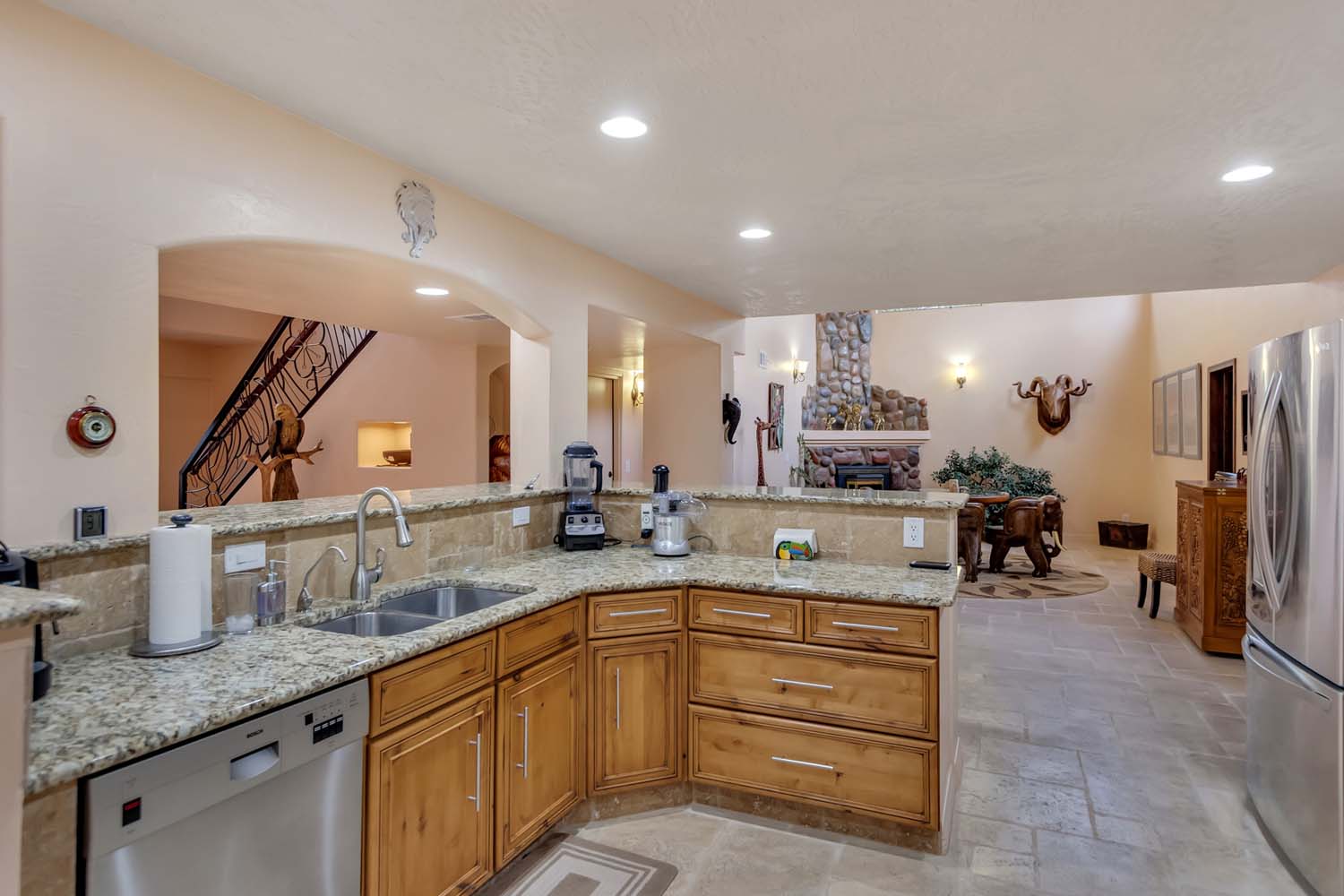 Peace & Tranquility. Views abound! Unique resort like setting. This home is unparalleled in the Village. Main home is 3307 sqft, & sits on 1.68 acres w/ 3bdms & 3 full baths. Beautiful open kitchen w/ granite counters & stainless steel appliances. Enjoy mornings in your breakfast nook & entertaining in your formal dining room w/ 19 ft ceilings & river rock fireplace. Looking to work from home, office has separate entrance & hickory cabinets. Home boasts travertine tile w/ plush carpets in bedrooms. Bali shades in home. Enjoy summer days & cool off in your salt water pool. Solar pool heater. Property is perfect for entertaining, visitors can stay in the 437 sqft guest house. Owners have lovingly & meticulously taken care of home. One of the few properties that allows AirBnB in the Village.