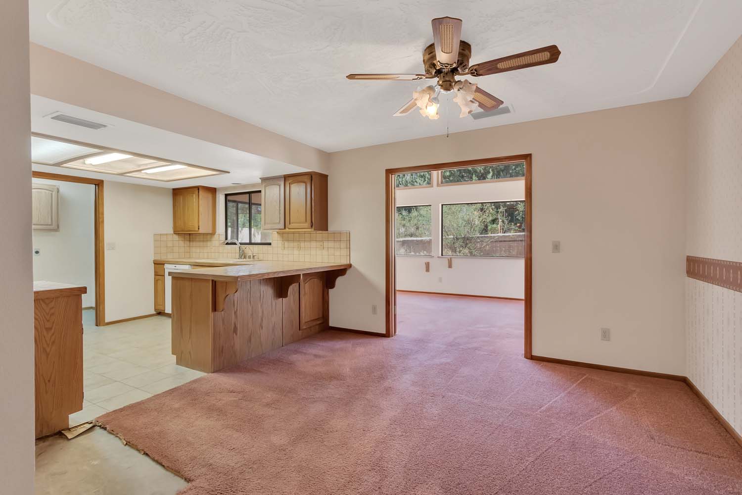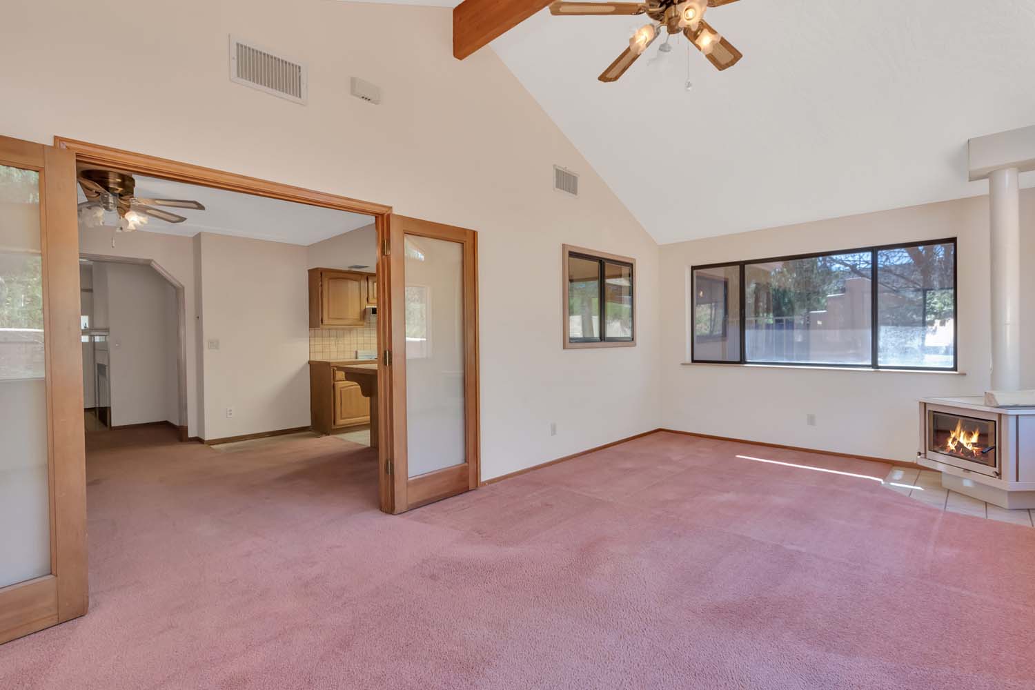 Well built home located on a large corner lot in a quiet neighborhood. Great bones & great pricing!! Buyer can turn this property into their dream home. Home boasts a fenced RV parking area w/ RV Dump & electrical hookup plus large pull through driveway for multiple cars. Home has a wood burning fireplace in living room w/ large Arizona Room w/ cathedral ceilings & wood stove. Office space located next to 2nd bdm. Close to all the amenities the Village has to offer, golf, hiking, restaurants and dining.